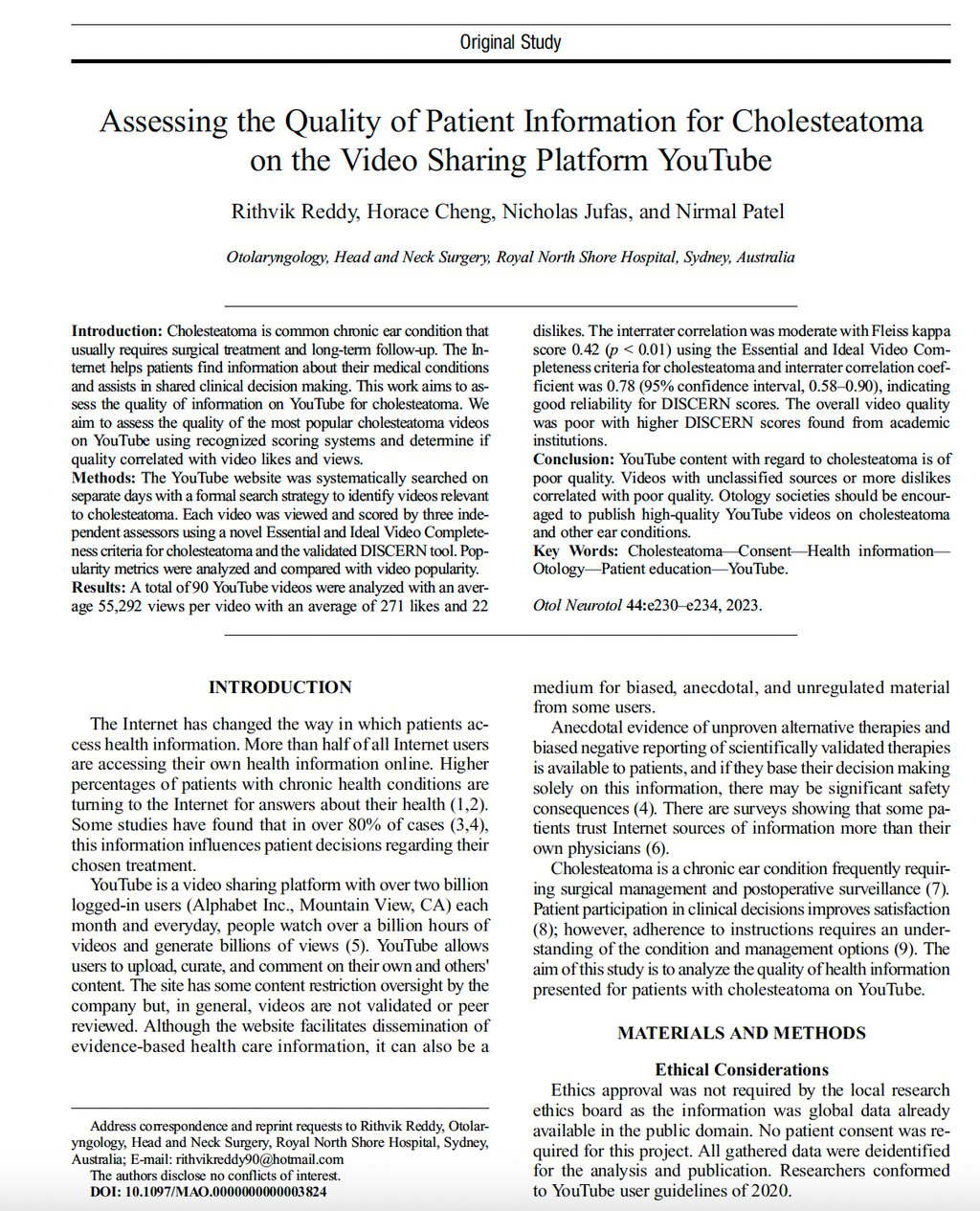 Dr Rithvik Reddy is a board-certified, fellowship-trained Ear, Nose and Throat (ENT) Surgeon with a subspecialist focus in Otology, Auditory Implants and Lateral Skull Base Surgery. He currently holds consultant appointments at Sydney Children’s Hospital, Prince of Wales and Liverpool Hospitals, where he provides expert care for both adult and paediatric patients with ENT problems with a focus on ear and hearing conditions. He is the current supervisor of training at Sydney Children's Hospital and is actively involved with teaching and supervising medical students as well as junior doctors.