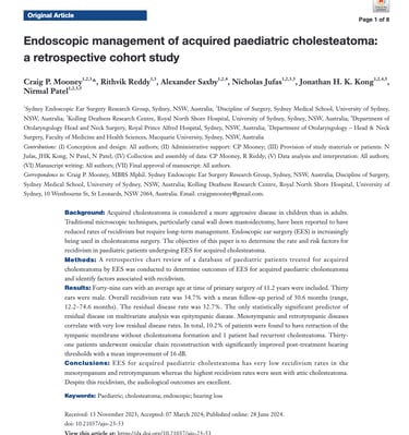 Dr Reddy is actively involved in clinical research and surgical education, with numerous peer-reviewed publications and textbook chapters to his name. He is currently affiliated with the University of New South Wales and is part of several research projects. He regularly presents at national and international conferences and is committed to collaborative, patient-centred care—working closely with GPs, audiologists, and allied health teams to deliver the best possible outcomes for his patients.